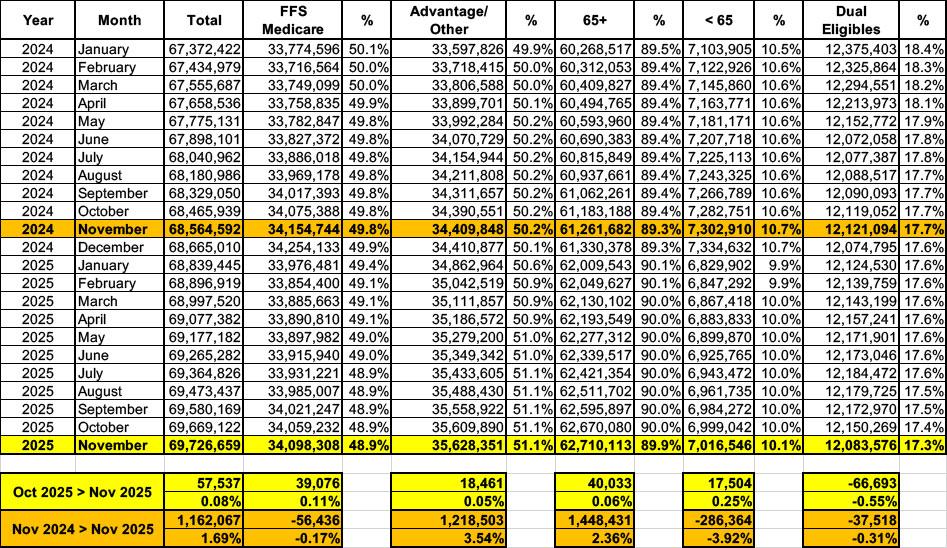 CMS posts claimed November 2025 Medicare enrollment; over 51% now enrolled in Med Advantage