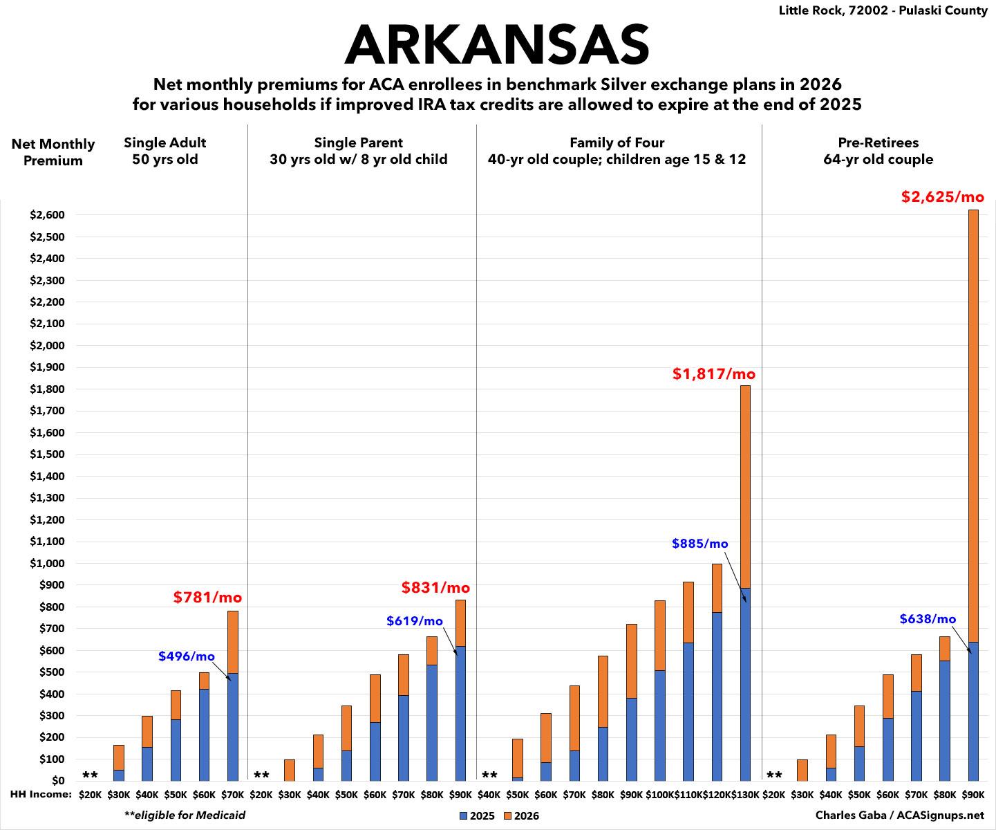 How much more will ~166,000 ARKANSAS residents have to pay if the improved #ACA subsidies aren't extended? (updated)