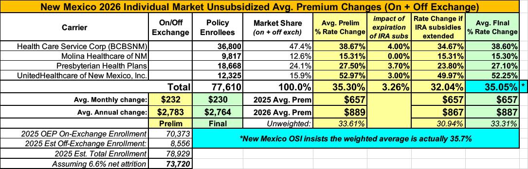 New Mexico confirms avg. 35.7% rate hikes but promises to match lost federal subsidies for nearly all enrollees!
