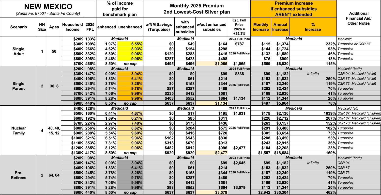 Like some other states, New Mexico has their own "Turquoise Savings" subsidy program on top of the federal subsidies; I have no idea how this will play out next year with the expiring IRA subsidies, but it's going to mean drastic rate hikes for a lot of people regardless.