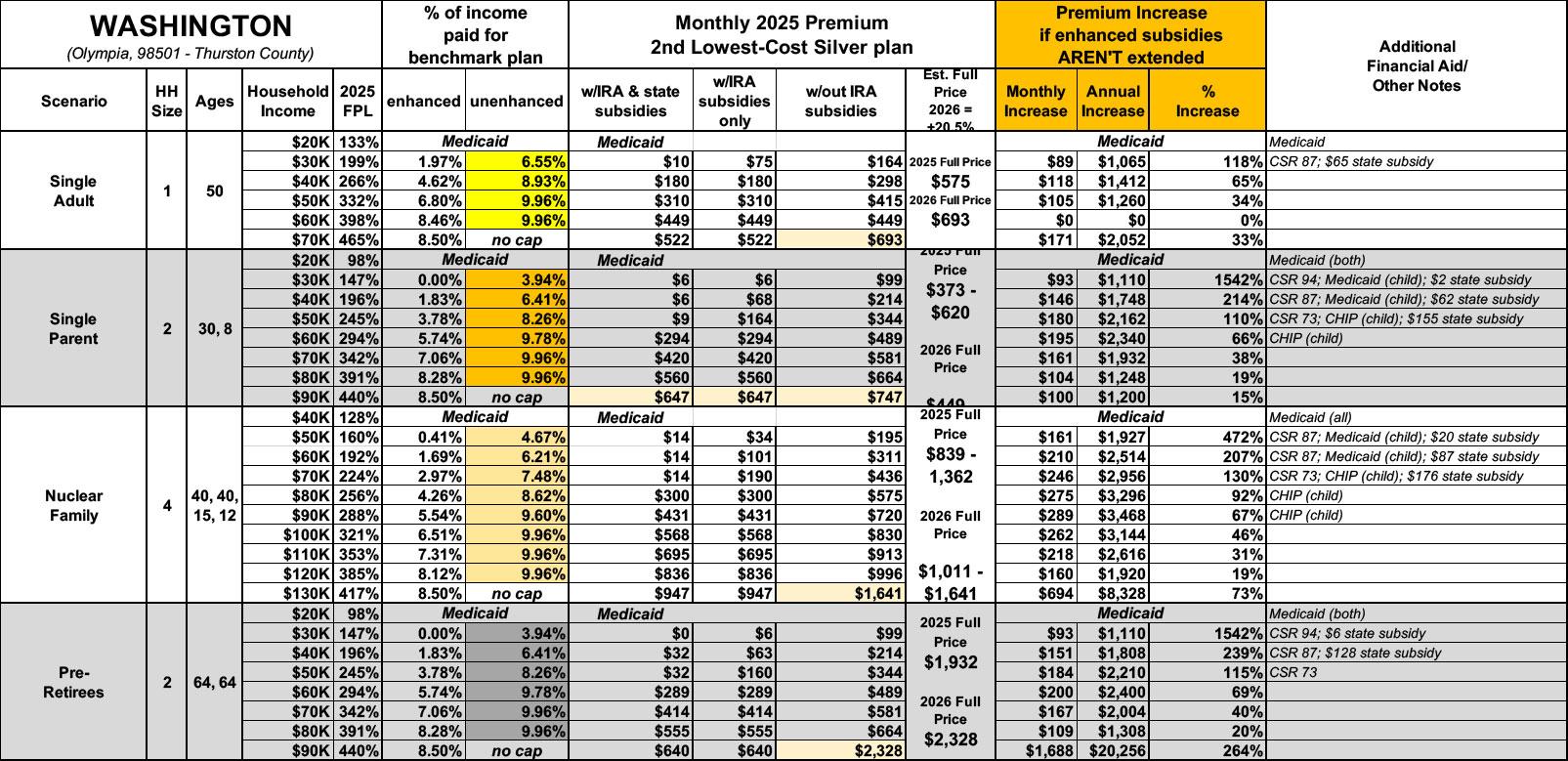 Note: Like several other states, Washington has their own state-based supplemental subsidy program; I'm not sure how that will be impacted going into 2026 and beyond given the federal subsidy cuts.