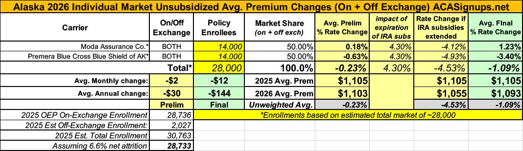 2026 Final Gross Rate Changes - Alaska: -1.1%...but up to ~27,000 enrollees are STILL likely looking at MASSIVE rate hikes regardless (updated)