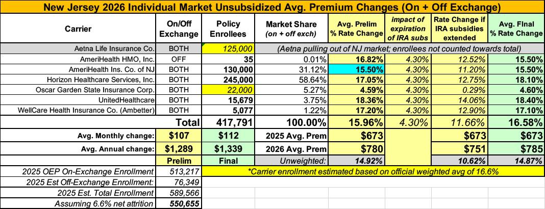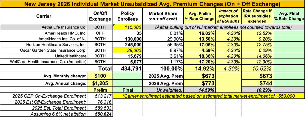 UPDATE 8/28/25: According to the New Jersey Dept. of Banking & Insurance, Amerihealth has bumped up their preliminary request by 2 points, which in turn raises the weighted average by one point to 15.9% (I actually have it down as 15.5% but whatever...)